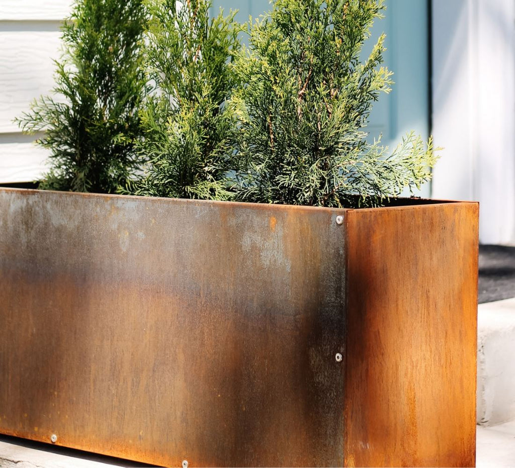 Modern Steel Planter Box Heavy Duty Corten Steel Lewis Bamboo