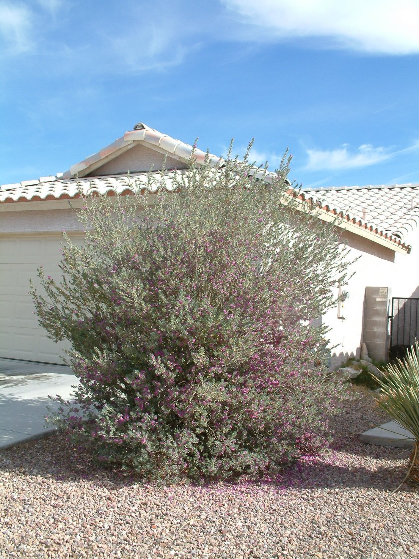 Texas sage is a popular plant in Arizona it can handle full and reflected sun survives long periods of drought once established. Foliage is comprised of distinctive silvery-gray leaves. 4 5 feet Bloom color.